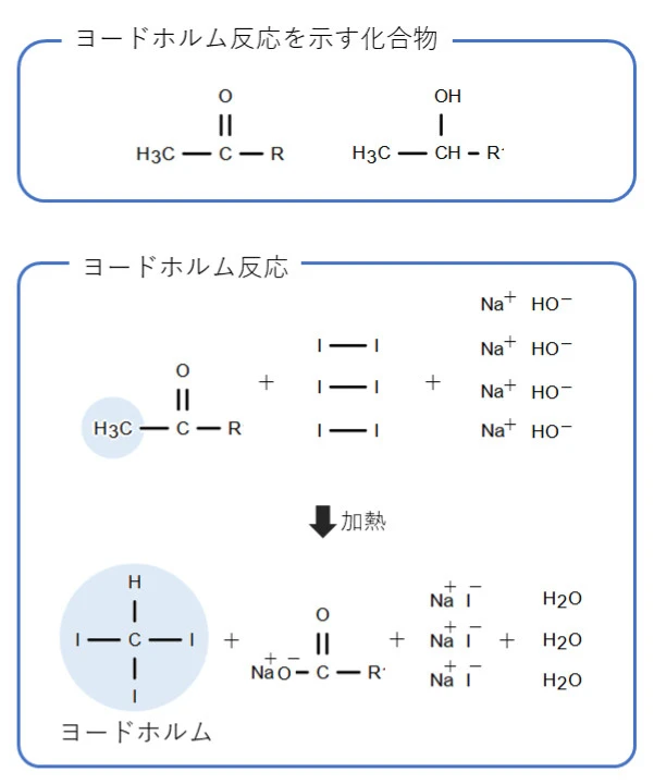 ヨードホルム反応とは、図に示す特定の構造をもつかどうかを