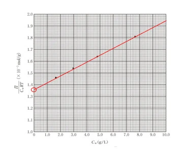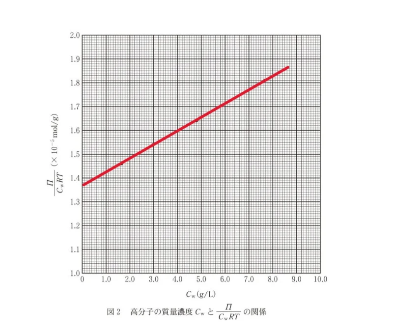 CWが0に近づくとΠもCWRTも0に近づくが、式(3)が示すように、その比Π/CWRTは1/M′に近づくことを利用する。具体的には、CWが異なるいくつかの試料を調製し、それぞれに対してΠを測定する。得られた結果を用いてCWを横軸に、Π/CWRTを縦軸にとってグラフに表すと、CW=0での切片からM′を求めることができる。